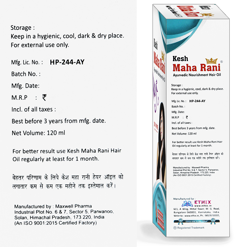 The Kesh Maha Rani Hair Oil will be acting on the hair follicle, which is the center of biological activity like pigmentation and hair growth. This oil will also react on the hair shaft just by penetrating into the medulla, which is known as the innermost layer of the hair shaft. These are the activated matrix cells that remove the fiber of the week's hair and, thus, will be helping to activate some new hair fiber. And this will result in longer, stronger, and more dense hair. Buy Keshmaha Rani Hair Oil online from ethix.in at the best price. Our new herbal Ayurvedic hair oil is made from some nourishing oils and some natural herbs.